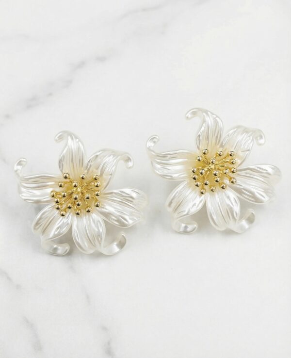Aretes en Rodio y Resina Blanco con Dorado ZARC01-670