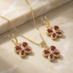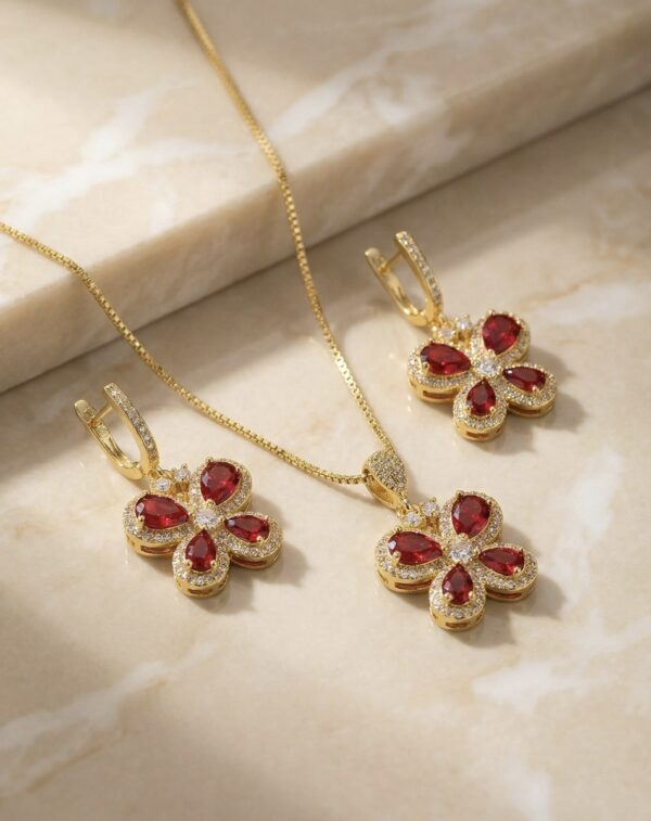 Set aretes + Collar en Rodio Dorado con Rojo ZSJC01-15
