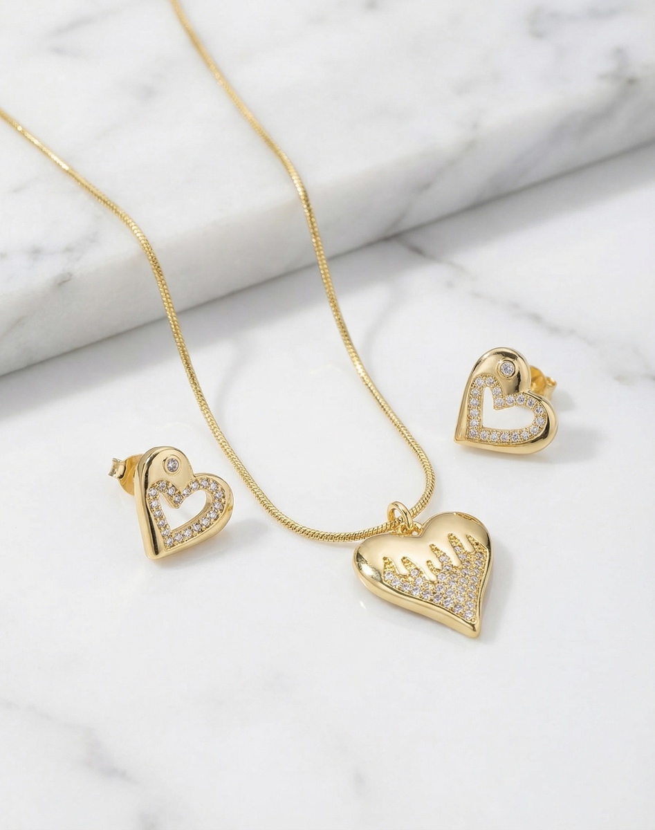 Set aretes + Collar en Rodio Dorado ZSJC04-14